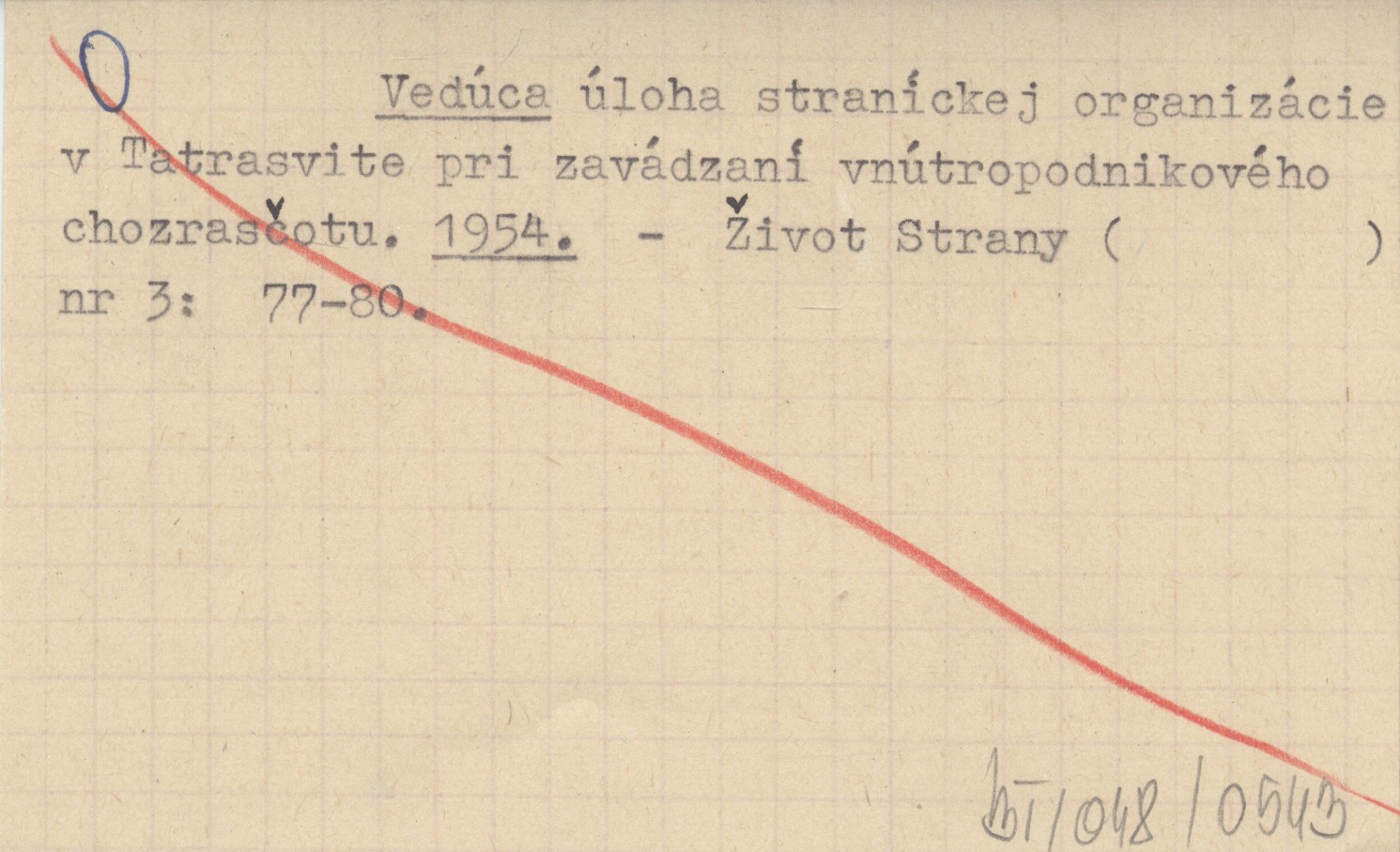 Vedúca úloha straníckej organizácie v Tatrasvite pri zavádzaní vnútropodnikového chozrasčotu. 1954