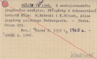 VÁ®NÝ Václav 1948 Z mezislovanského jazykového zeměpisu. Příspěvky k dokumentární hodnotě díla: M.Małecki i K.Nitsch, Atlas językowy polskiego Podkarpacia.