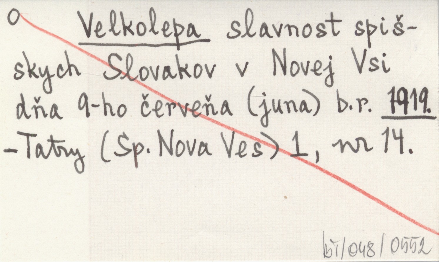 Velkolepa slavnost spišskych Slovakov v Novej Vsi dňa 9-ho červeňa (juna) b.r. 1919