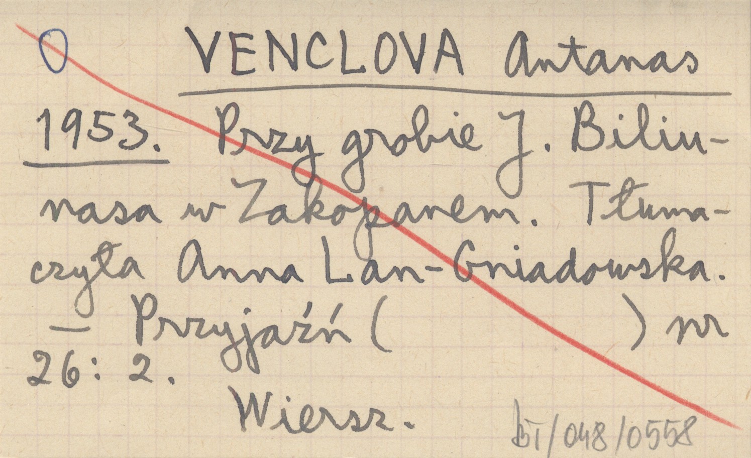 VENCLOVA Antanas 1953 Przy grobie J. Biliunasa w Zakopanem. Tłumaczyła Anna Lan-Gniadowska.