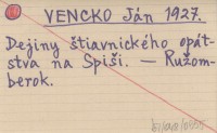 VENCKO Ján 1941 Z dejin okolia Spiąského Hradu.