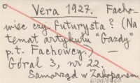 Vera 1927 Fachowiec czy futurysta? (Na temat artykułu "Gazdy" p. t. Fachowcy).