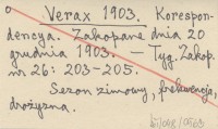Verax 1903 Korespondencya. Zakopane dnia 20 grudnia 1903.