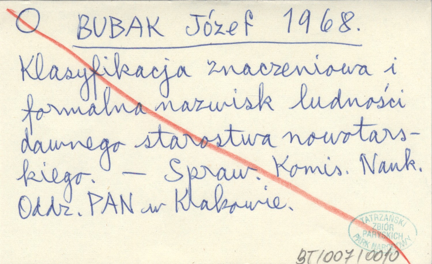 BUBAK Józef 1968 Klasyfikacja znaczeniowa i formalna nazwisk ludności dawnego starostwa nowotarskiego.