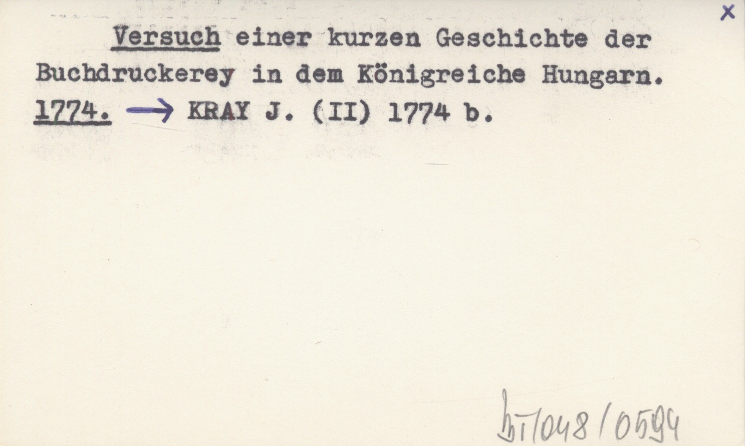Versuch einer kurzen Geschichte der Buchdruckerey in dem Königreiche Hungarn. 1774