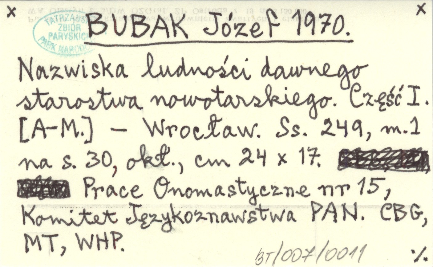 BUBAK Józef 1970 Nazwiska ludności dawnego starostwa nowotarskiego. Cz. I [A-M].