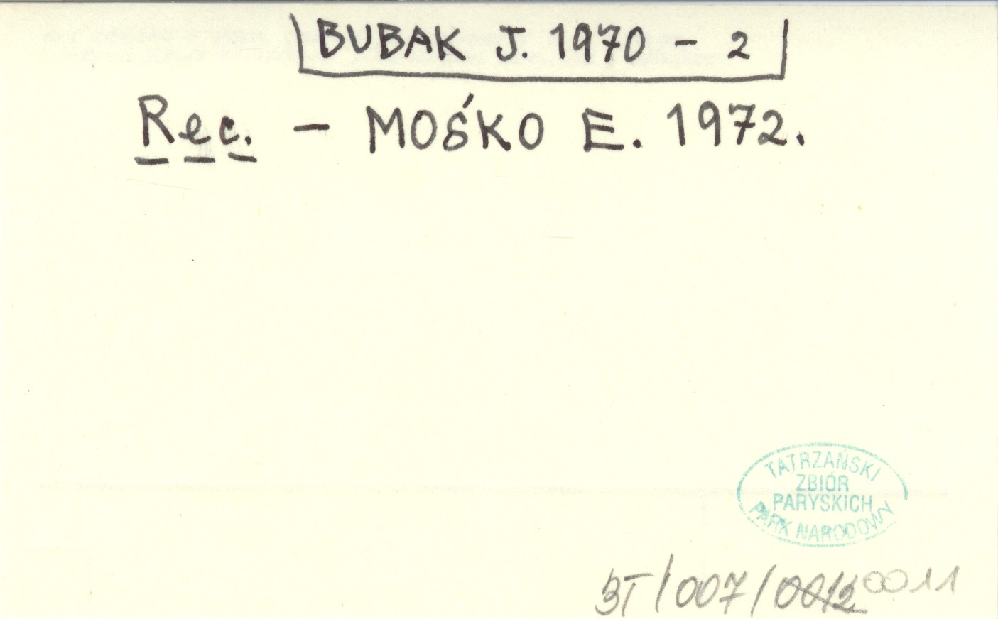 Prace Onomastyczne, Komitet Językoznawstwa PAN (Wrocław) , Nr 15: 249, 1 mapa na s. 30, okł., 24x17 cm. BUBAK J. 1970 - 2. REC: MOŚKO E. 1972