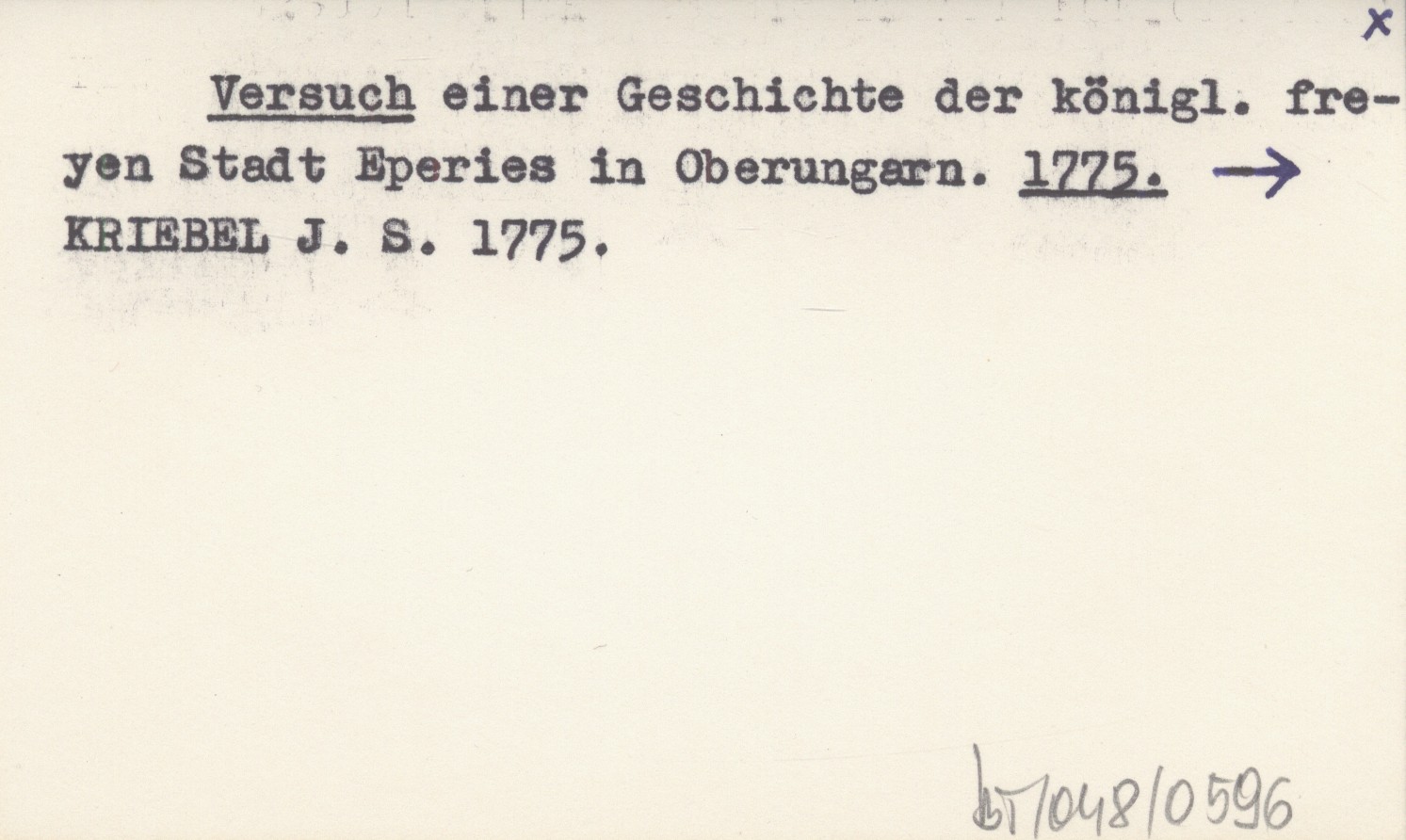 Versuch einer Geschichte der königl. freyen Stadt Eperies in Oberungarn. 1775
