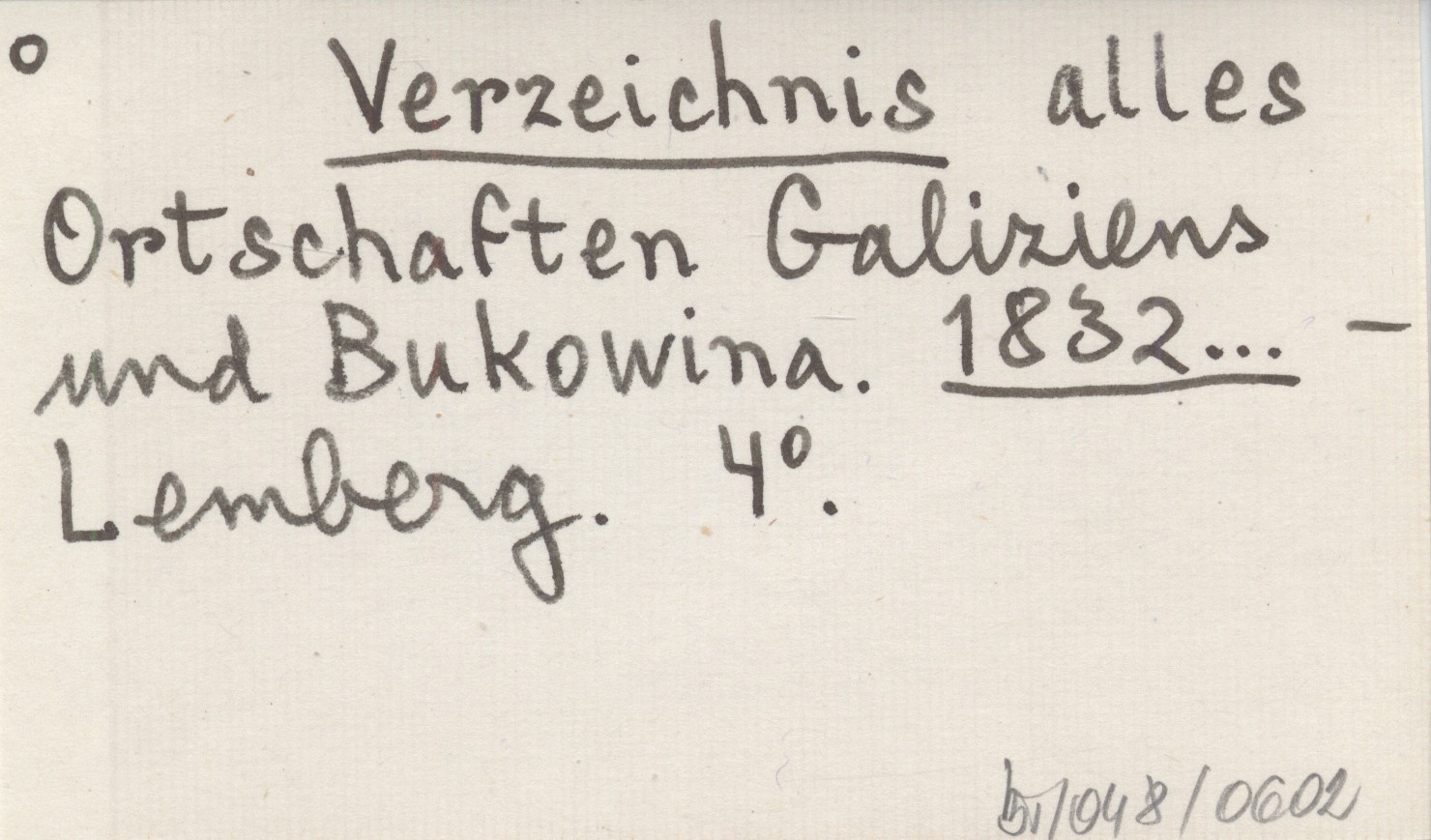 Verzeichnis alles Ortschaften Galiziens und Bukowina. 1832...