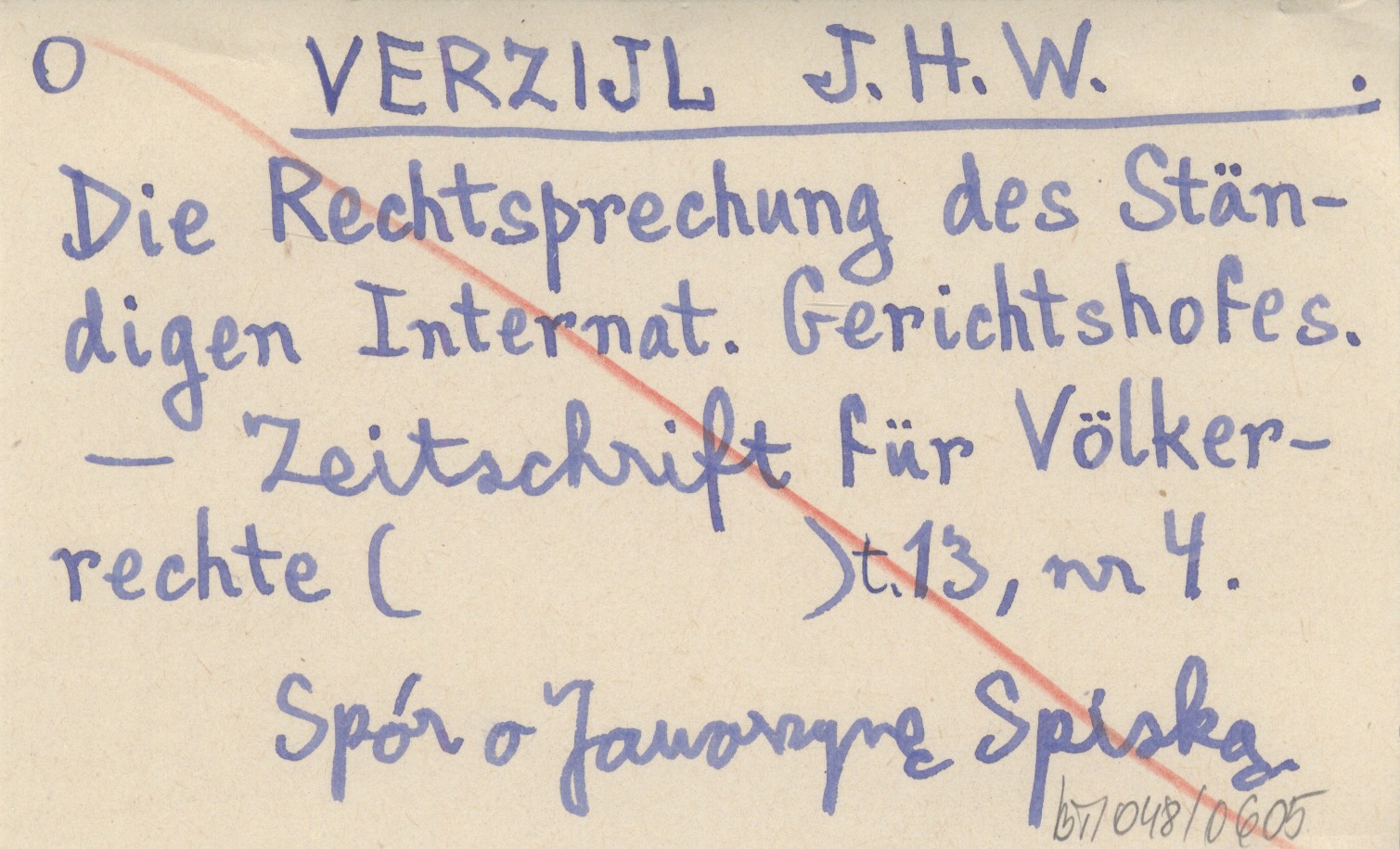 VERZIJL J.H.W. Die Rechtsprechung des Ständigen Internat. Gerichtshofes.