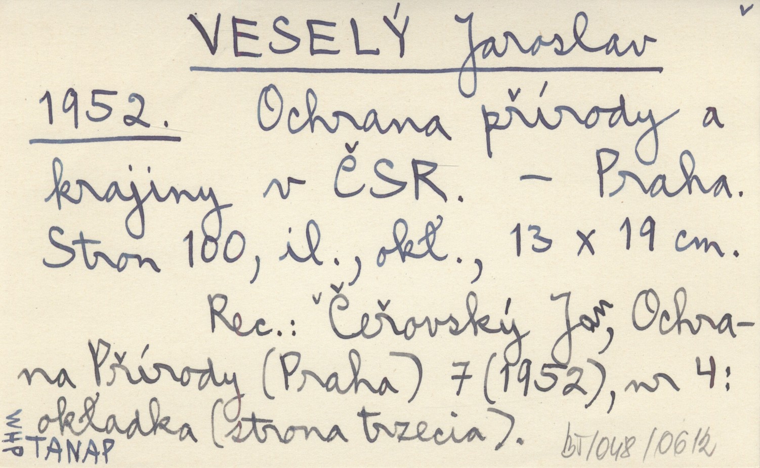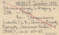 VESELÝ Jaroslav 1952 Ochrana přírody a krajiny v ČSR.