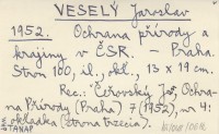 VESELÝ Jaroslav 1952 Ochrana přírody a krajiny v ČSR.