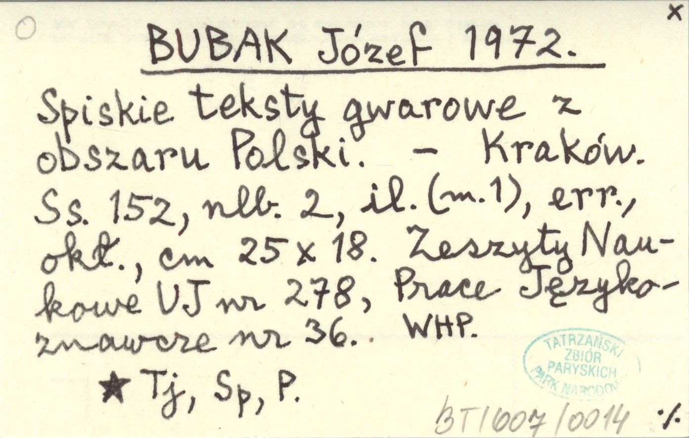 BUBAK Józef 1972 Spiskie teksty gwarowe z obszaru Polski.