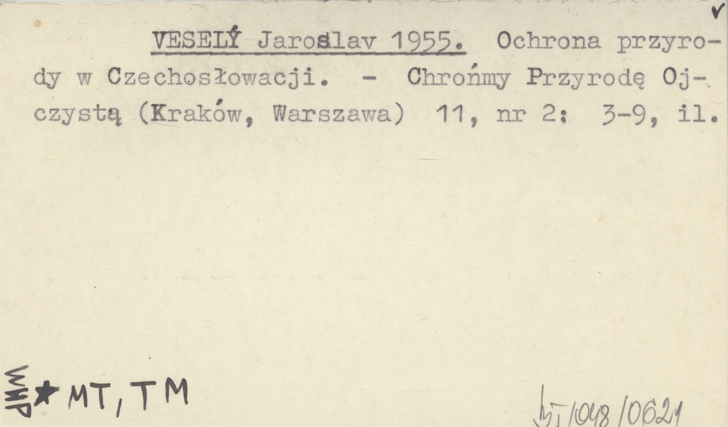 VESELÝ Jaroslav 1955 Ochrona przyrody w Czechosłowacji.