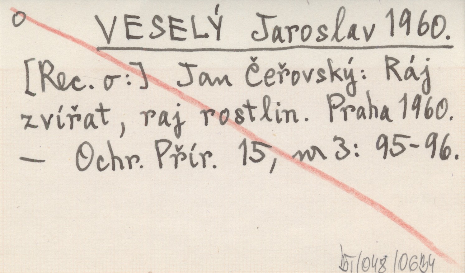 VESELÝ Jaroslav 1960 Jan Čeřovský: Ráj zvířat, raj rostlin. Praha 1960.