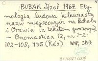 BUBAK Józef 1967 Etymologia ludowa kilkunastu nazw miejscowych na Podhalu i Orawie (z tekstem gwarowym).