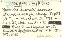BUBAK Józef 1970 Nazwiska ludności dawnego starostwa nowotarskiego. Cz. I [A-M].