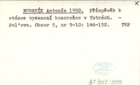 BUBENÍK Antonín 1950 Příspěvěk k otázce vysazení kozorožce v Tatrách.