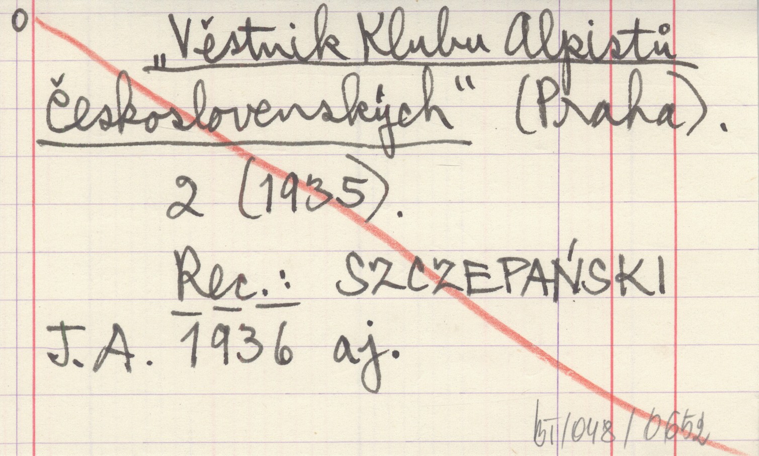 Věstnik Klubu Alpistů Československých (Praha) , 2 (1935). REC: SZCZEPAŃSKI J. A. 1936 aj