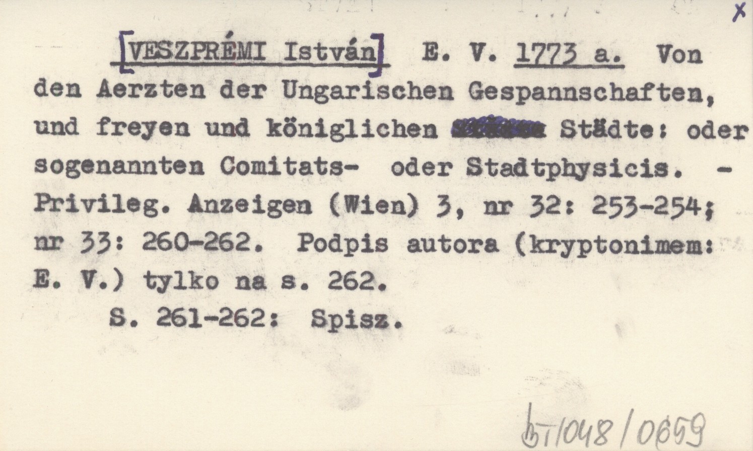 E. V. [VESZPRÉMI István] 1773 a Von den Aerzten der Ungarischen Gespannschaften, und freyen und königlichen Städte: oder sogenannten Comitats- oder Stadtphysicis.