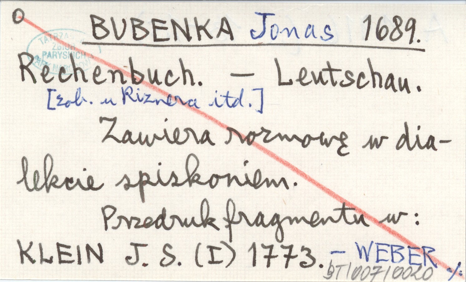 Leutschau , Zawiera rozmowę w dialekcie spiskoniem. Przedruk fragmentu w: KLEIN J. S. (I) 1773.- WEBER A. 1916 (s. 13-15). [Zob. u Riznera itd.]