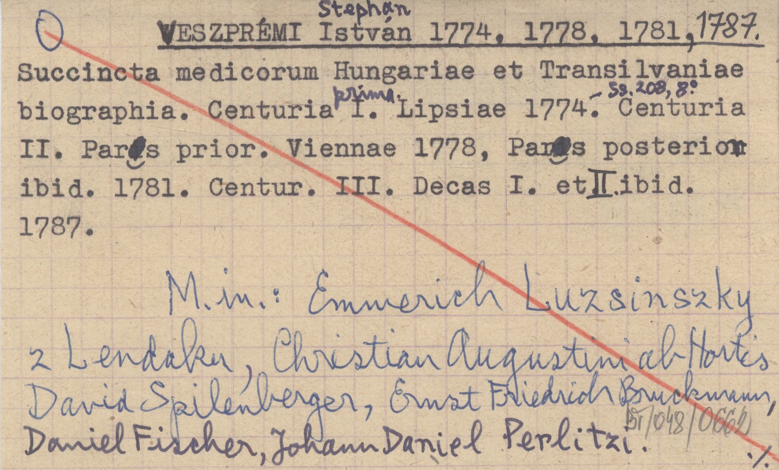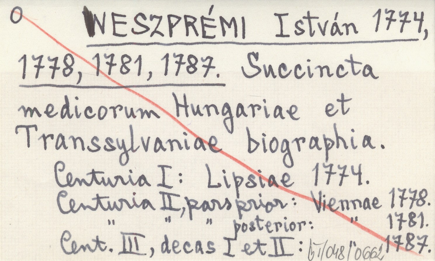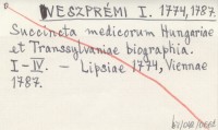 VESZPRÉMI István 1774 Succincta medicorum Hungariae et Transilvaniae biographia. Centuria prima I. Lipsiae 1774. Centuria II. Pars prior. Viennae 1778, Pars posterior ibid. 1781. Centur. III. Decas I. et II. ibid. 1787.