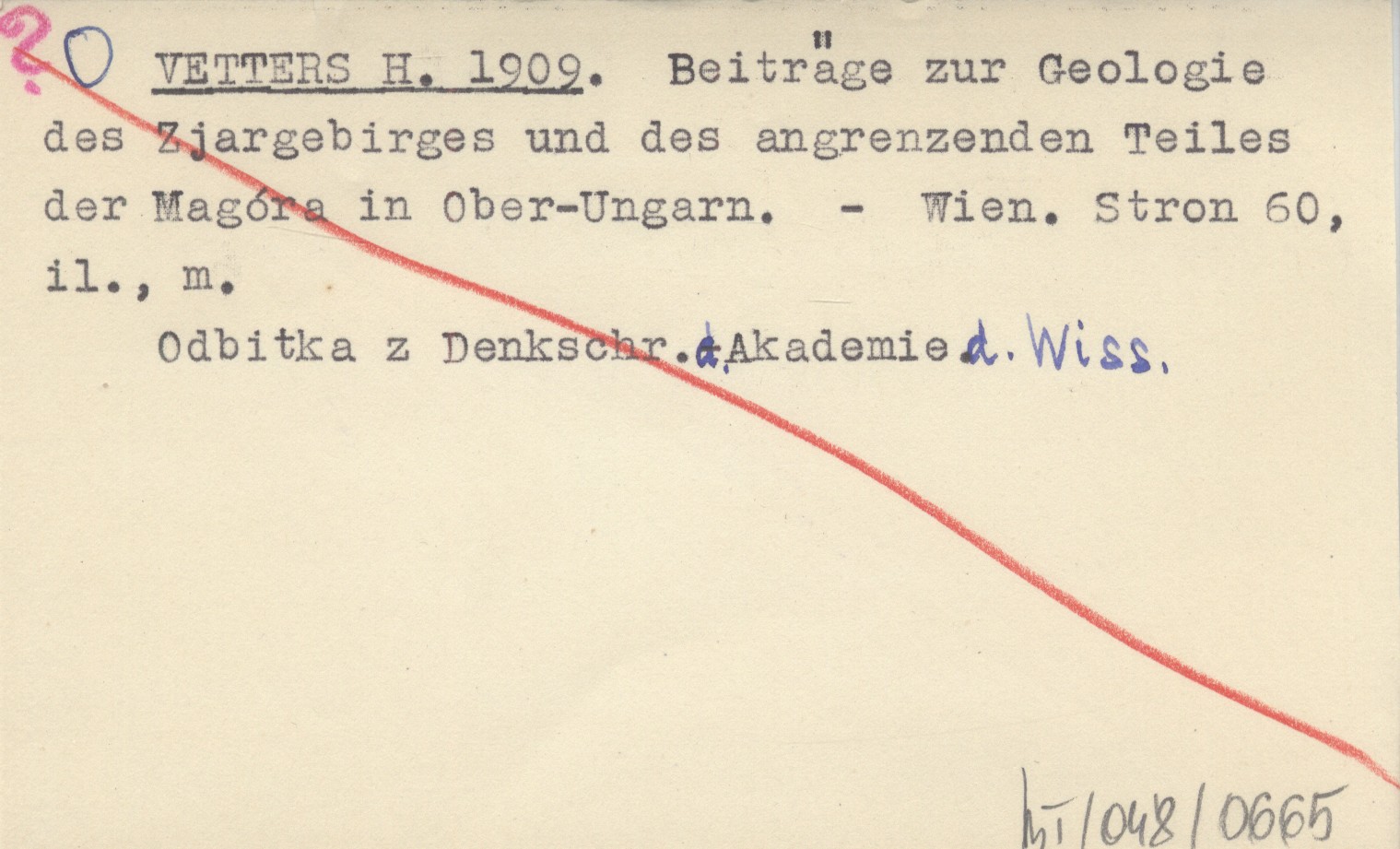 VETTERS H. 1909 Beiträge zur Geologie des Zjargebirges und des angrenzenden Teiles der Magóra in Ober-Ungarn.
