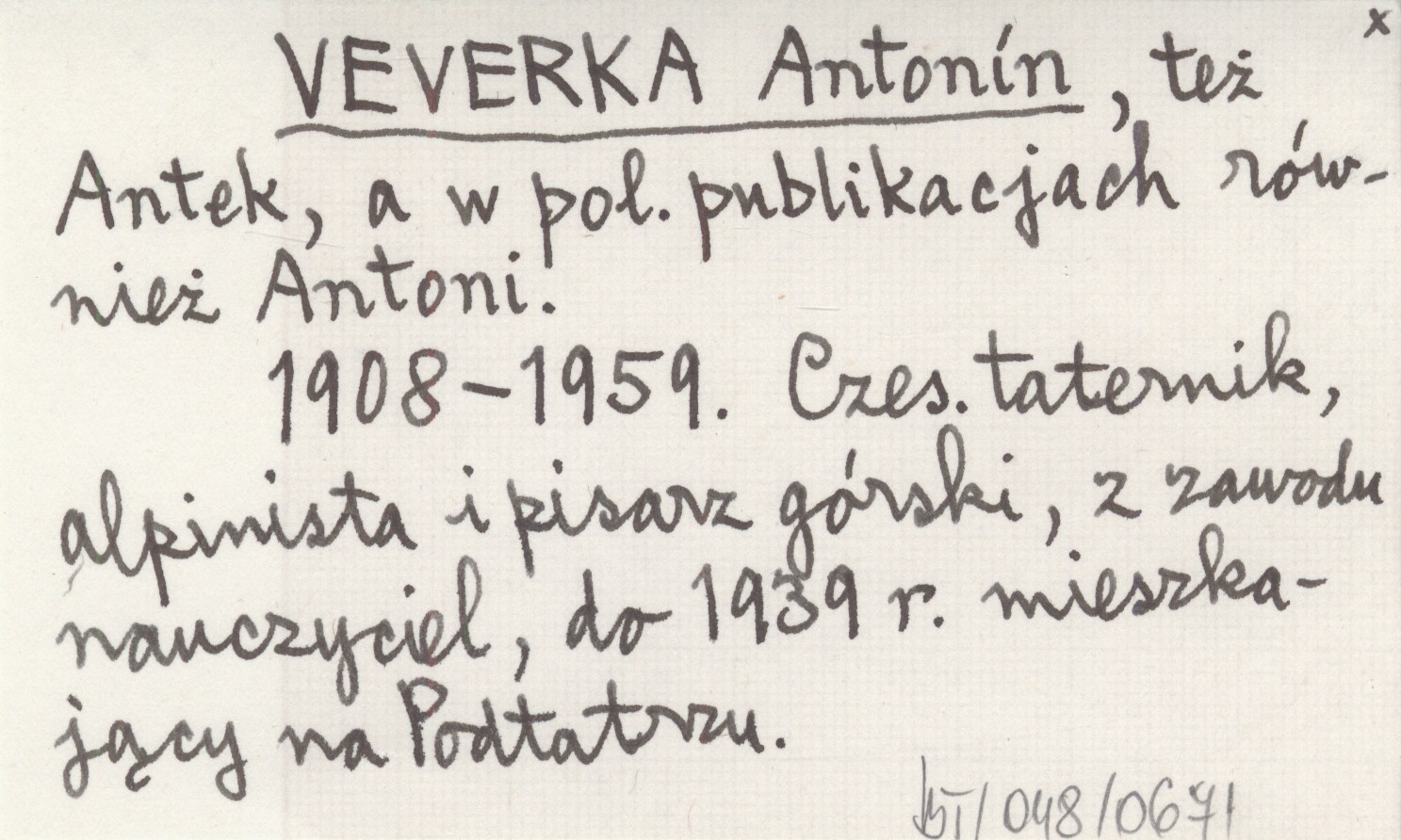 też Antek, a w pol. publikacjach również Antoni. 1908-1959. Czes. taternik, alpinista i pisarz górski, z zawodu nauczyciel, do 1939 r. mieszkający na Podtatrzu.