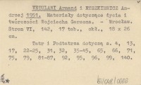 VETULANI Armand RYSZKIEWICZ, Andrzej. ; 1951 Materiały dotyczące życia i twórczości Wojciecha Gersona.