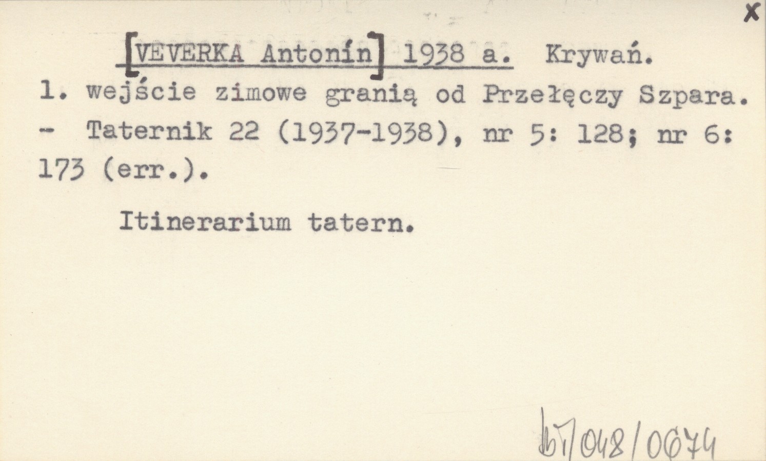 Taternik, 22 (197-1938), nr 5: 128 ; nr 6: 173 (err.). Itinerarium tatern.