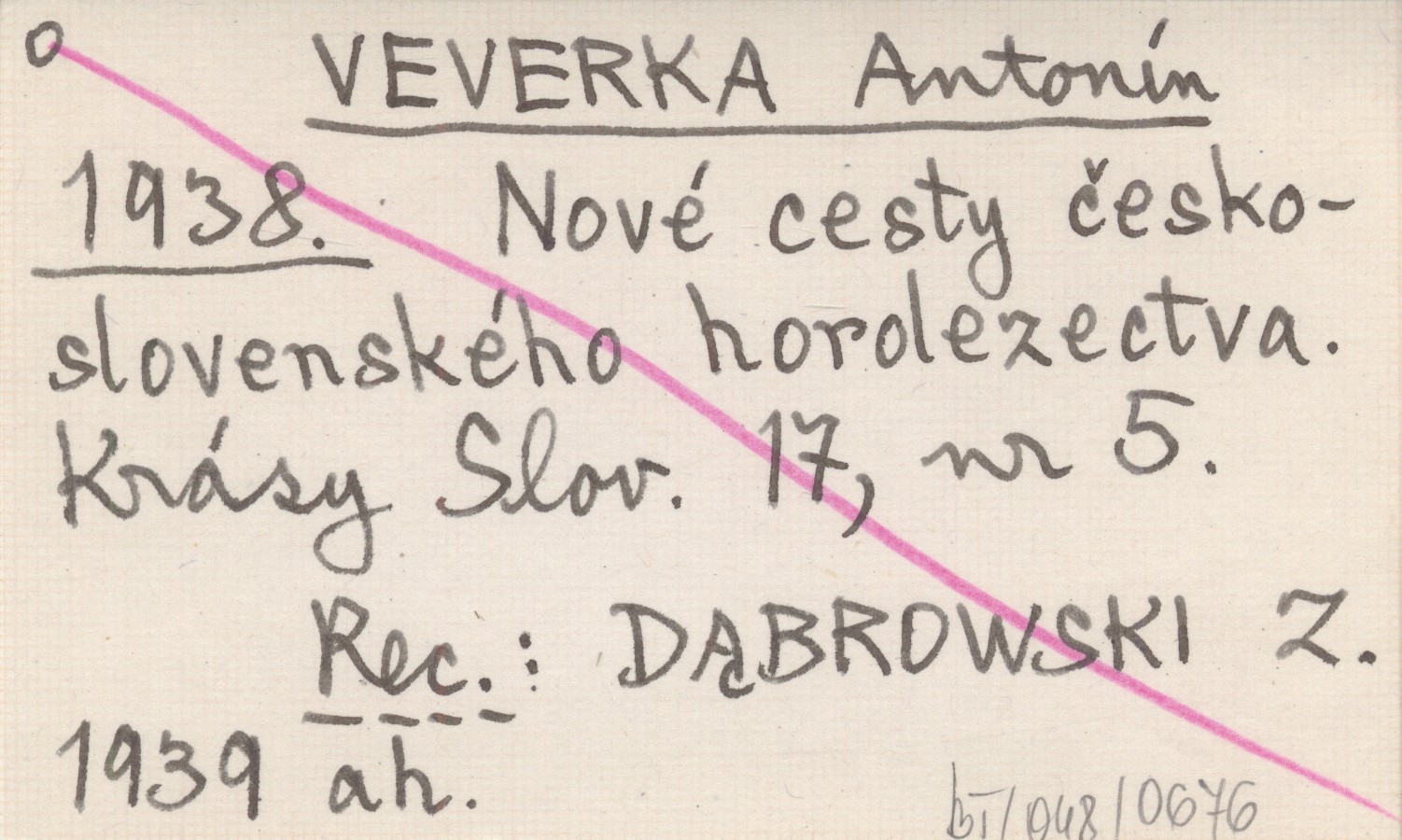 VEVERKA Antonín 1938 Nové cesty československého horolezectva.