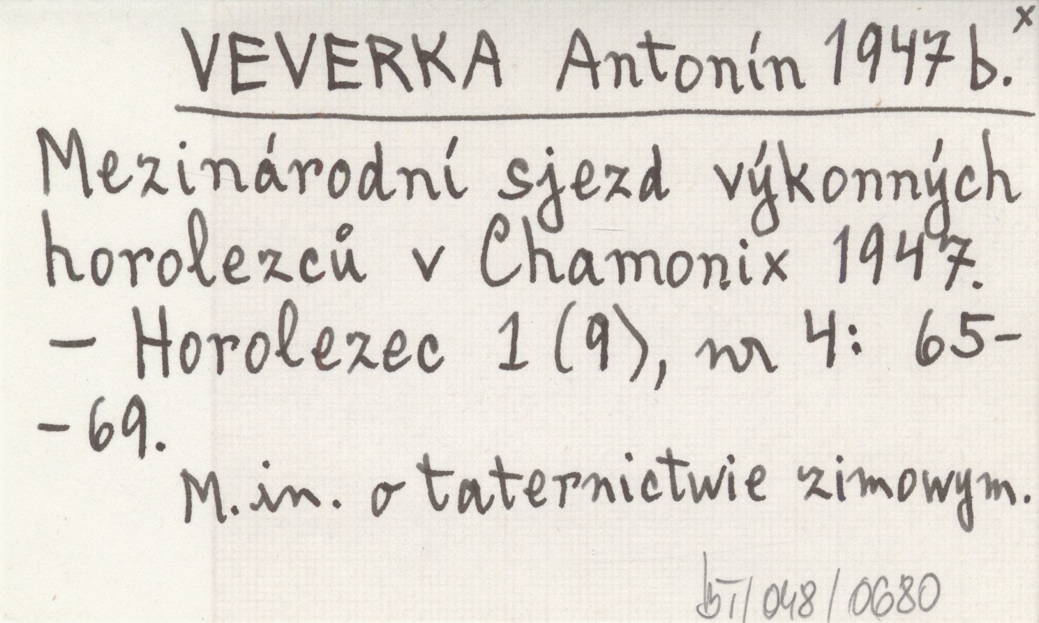VEVERKA Antonín 1947 b Mezinárodní sjezd výkonných horolezců v Chamonix 1947.