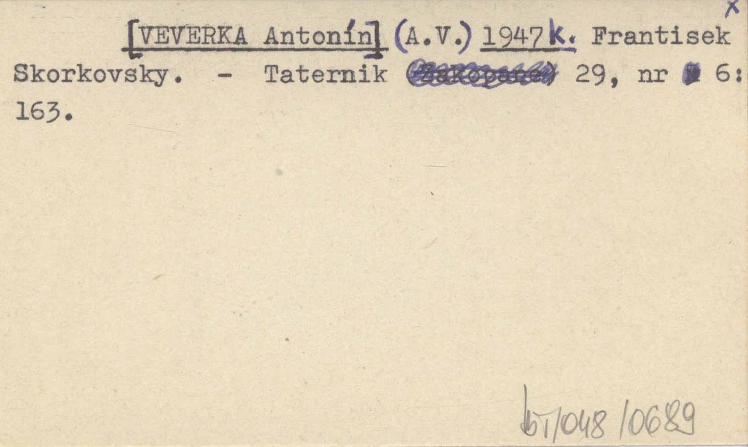 (A. V.) [VEVERKA Antonín] 1947 k Frantisek Skorkovsky.