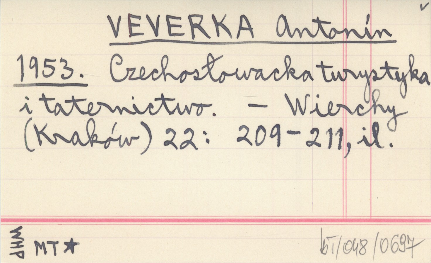 VEVERKA Antonín 1953 Czechosłowacka turystyka i taternictwo.