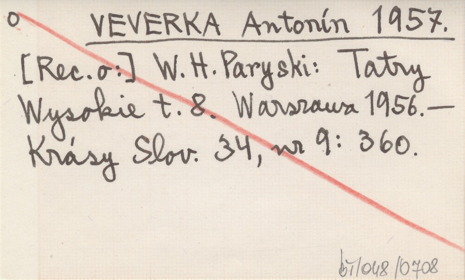 VEVERKA Antonín 1957 W. H. Paryski: Tatry Wysokie t. 8. Warszawa 1956.