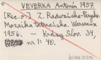 VEVERKA Antonín 1957 Z. Radwańska-Paryska: Mozaika tatrzańska. Warszawa 1956.