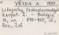 VĚZDA A. 1958... Lišejníky československých Karpat. I.