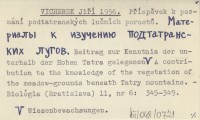 VICHEREK Jiří 1956 Příspěvek k poznání podtatranských lučních porostů. Materialy k izučeniju podtatranskich lugov. Beitrag zur Kenntnis der unterhalb der Hohen Tatra gelegenen Wiesenbewachsungen. A contribution to the knowledge of the vegetation of the meadow-grounds beneath Tatry mountains.