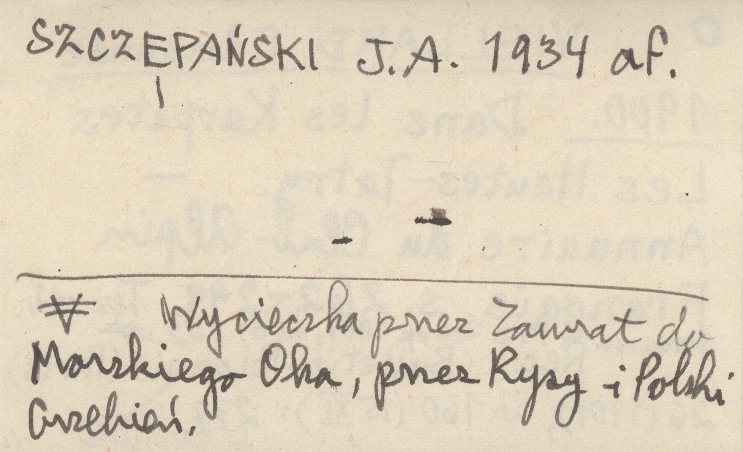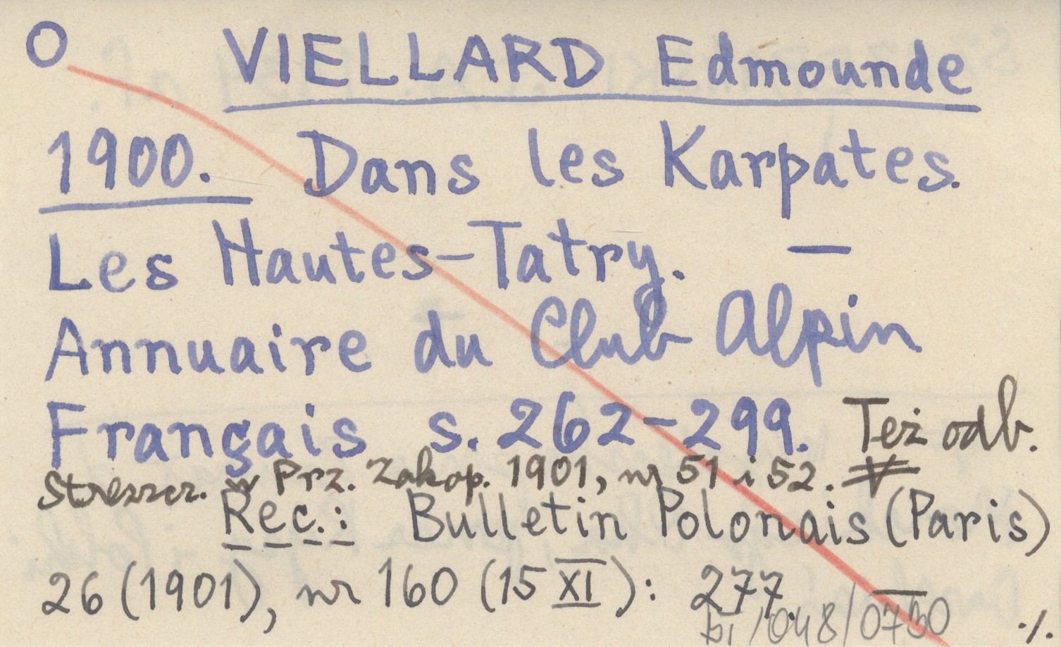Annuaire du Club Alpin Français, S. 262-299. Wycieczka przez Zawrat do Morskiego Oka, przez Rysy i Polski Grzebień. Też odb. Streszcz. w Prz. Zakop. 1901, nr 51 i 52. REC: Bulletin Polonais (Paris) 26 (1901), nr 160 (15 XI): 277 ; SZCZEPAŃSKI J.A. 1934 af ;
