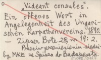 "Videant consules". Ein offenes Wort in Angelegenheit des Ungarischen Karpathenvereins. 1890