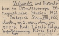 RED: László Földes ; Viehzucht und Hirtenleben in Ostmitteleuropa. Ethnographische Studien. 1961