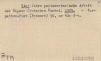 Vier Jahre parlamentarische Arbeit der Zipser Deutschen Partei. 1929