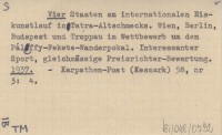 Vier Staaten am internationalen Eiskunstlauf in Tatra-Altschmecks. Wien, Berlin, Budapest und Troppau im Wettbewerb um den Pálffy-Fekete-Wanderpokal. Interessanter Sport, gleichmässige Preisrichter-Bewertung. 1937