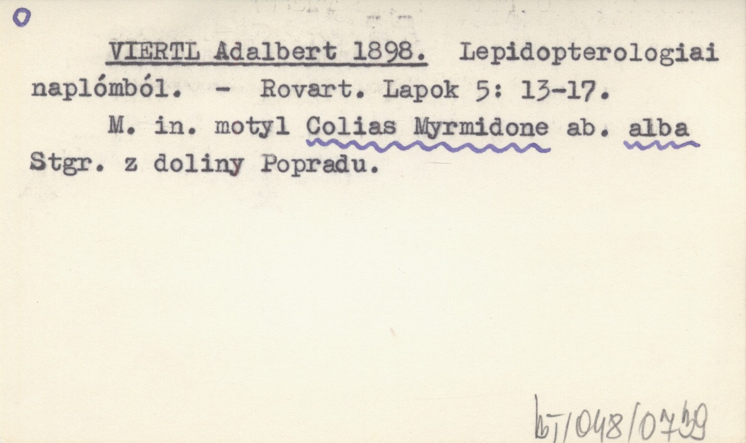 Rovart. Lapok, 5: 13-17. M.in. motyl Colias Myrmidone ab. alba Stgr. z doliny Popradu.