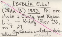 (Olda B.) [BUBLÍK Olda] 1953 Pri prechode z Chaty pod Rysmi [...].