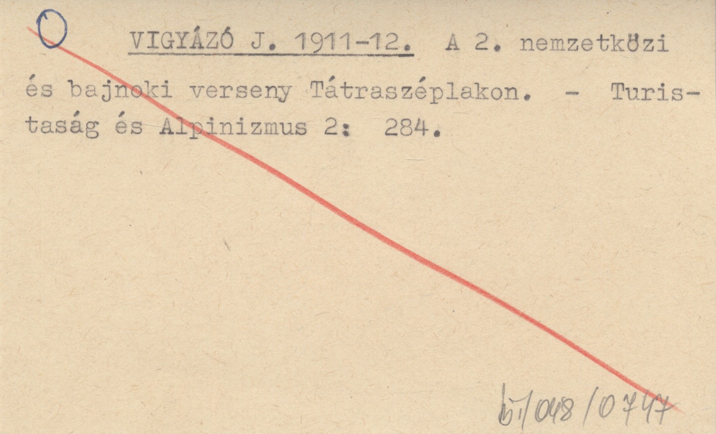VIGYÁZÓ J. 1911-12 A 2. nemzetközi és bajnoki verseny Tátraszéplakon.