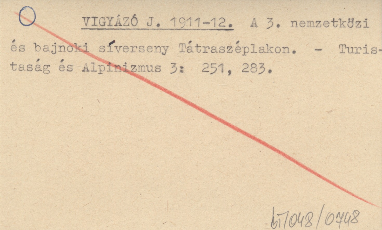 VIGYÁZÓ J. 1911-12 A 3. nemzetközi és bajnoki síverseny Tátraszéplakon.