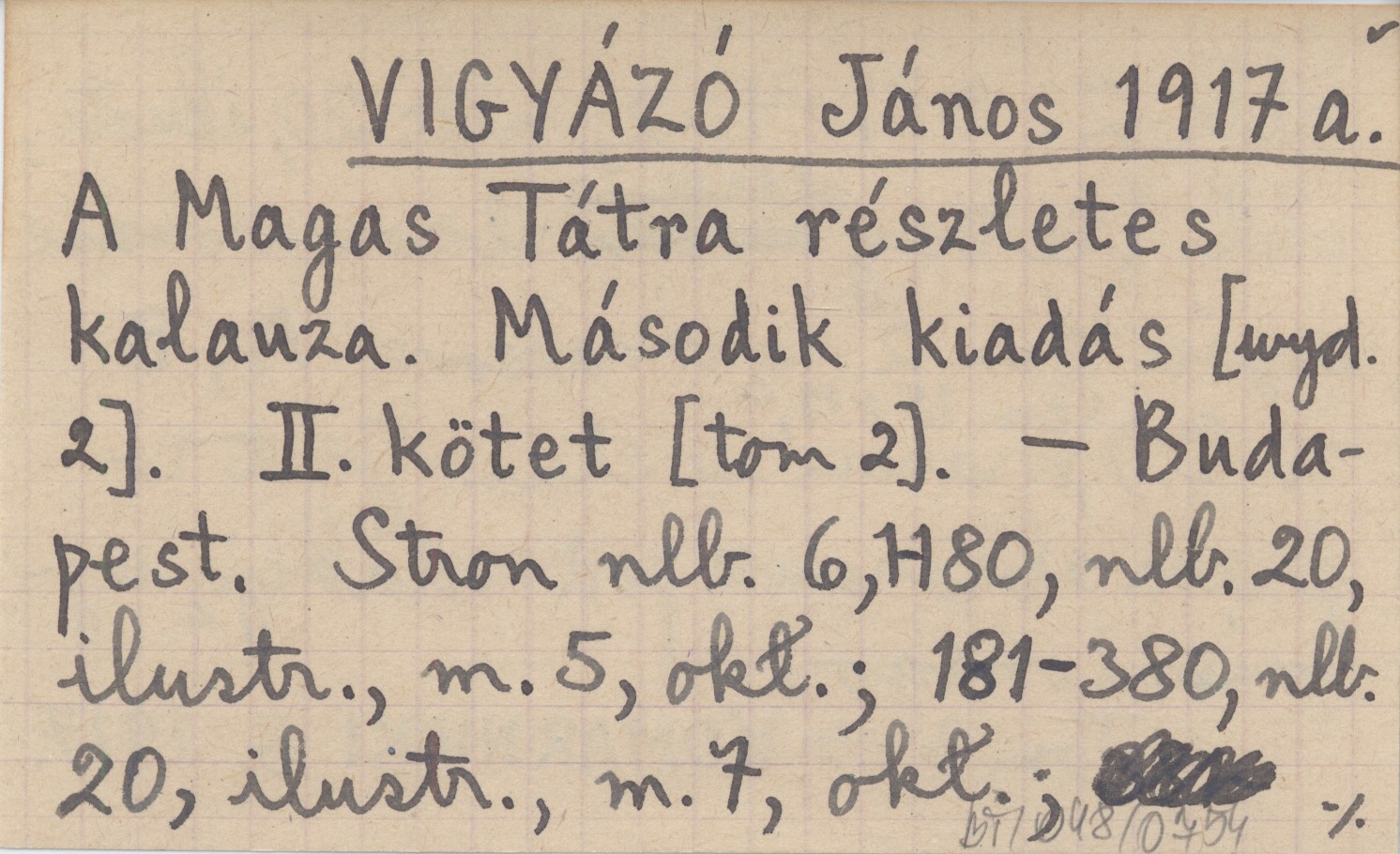 VIGYÁZÓ János 1917 a A Magas Tátra részletes kalauza. Második kiadás. II. kötet [tom 2].