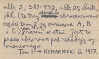 WYD: 2 Budapest , [6] s., 1180 s., [20] s., il., 5 m., okł. ; 181-380, [20] s., il., 7 m., okł. ; [2] s., 381-432, [20] s., il., okł., 15x11 cm. trzy oddzielnie zbroszurowane części tomu 2 są oznaczone A, B i C, razem w etui. Jest to praca zbiorowa pod redakcją wymienionego. Tom 3: KOMARNICKI G. 1917