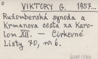 VIKTORY G. 1957... Ružomberská synoda a Krmanova cesta za Karolom XII.